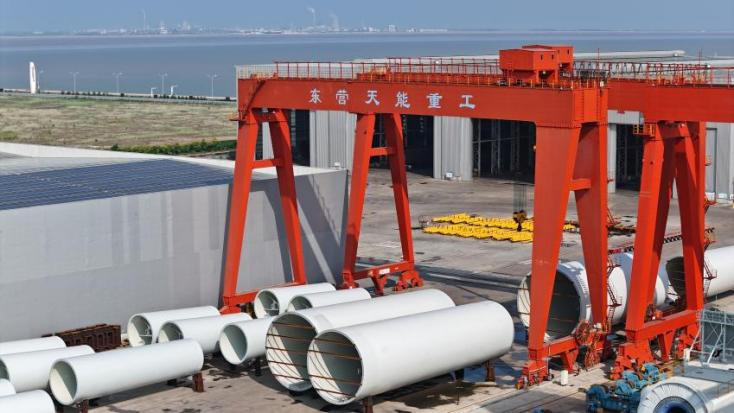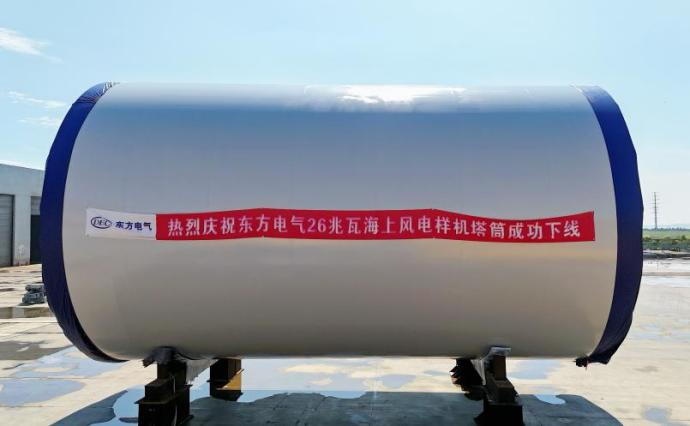 全球单机容量最大的26MW风力发电机组配套塔筒,近日在开云(中国)官方重工东营基地成功下线。